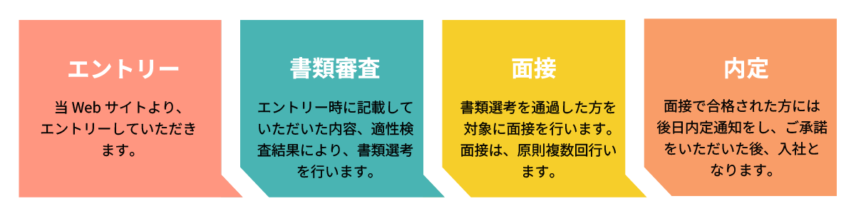 | 福利厚生 | 住宅支援制度(寮、手当等)、財形制度、持株制度、カフェテリアプラン、家族手当、通勤手当 等 | |