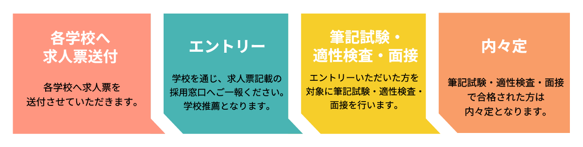 「新卒エントリー希望」と記載し、お名前、大学・学部・学科名など必要事項を入力してお送りください。